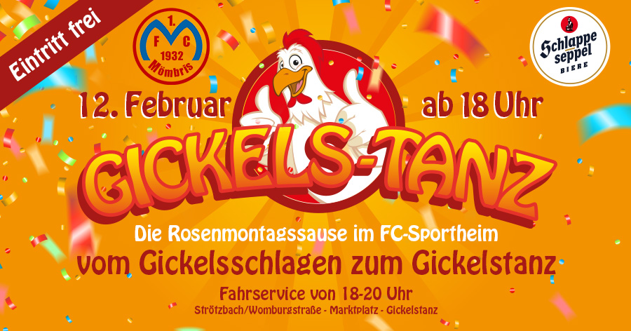 Am Rosenmontag öffnet das Sportlerheim seine Pforten für den Gickels-Tanz beim FCM!