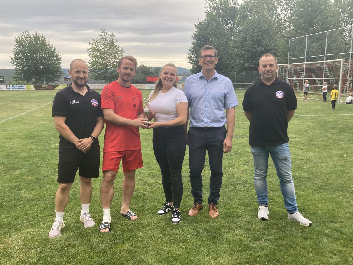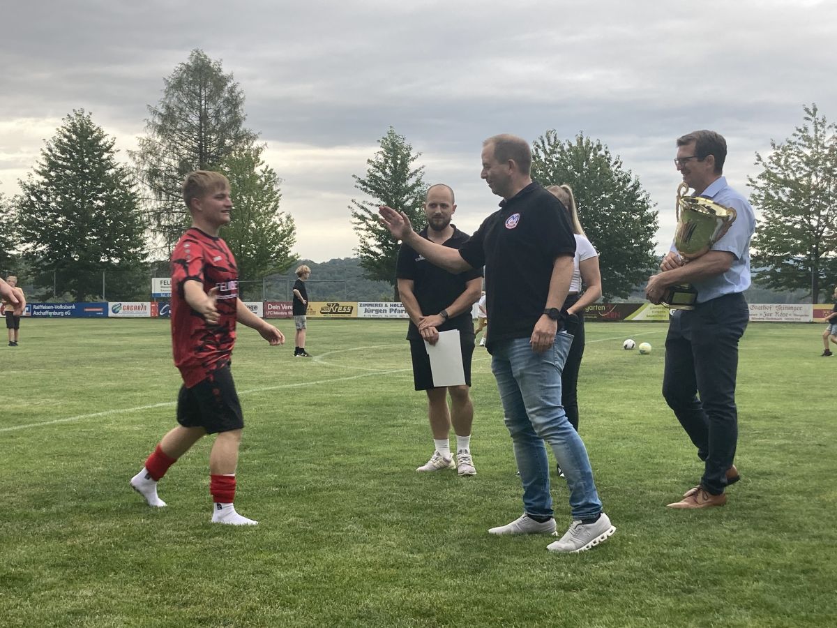 Bei der anschließenden Siegerehrung durften Lisa-Marie Schäfer von der Feingeist GmbH, Bürgermeister Felix Wissel und die beiden Vorsitzenden des 1. FC Mömbris Christian Schüßler und Tobias Noe die Pokale überreichen. Torschützenkönig des Turnieres wurde Benni Hofmann von der SG Mensengesäß/Brücken mit sieben Treffern.