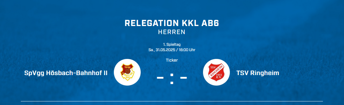Am Samstag, 31.05. (Anpfiff: 16:00 Uhr) findet auf dem Gickelstanz das Relegationsspiel zur Kreisklasse zwischen der SpVgg Hösbach-Bahnhof II und dem TSV Ringheim statt.